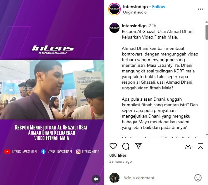 Ahmad Dhani memberikan sindiran yang sangat keras terhadap Maia Estianty, sementara putra sulungnya, Al Ghazali, memberikan tanggapan yang mengejutkan. Informasi ini diketahui dari unggahan di akun Instagram @intensindigo pada (07/07/2025).